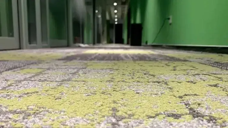 (carbon-neutral carpets, recycled office furniture, climate-themed meeting rooms, ubiquitous carbon labels, and a moss wall that our cleaner nurtures daily!)