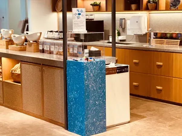 By converting single-use packaging into new recyclable materials, it not only replaces traditional high-carbon materials such as wood, acrylic, glass, terrazzo, marble, and sintered stone but also offers excellent properties like waterproofing, anti-corrosion, fire resistance, recyclability, and ease of processing, with a long service life, reducing resource waste caused by frequent material replacements.