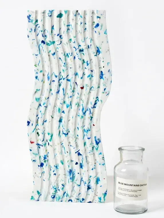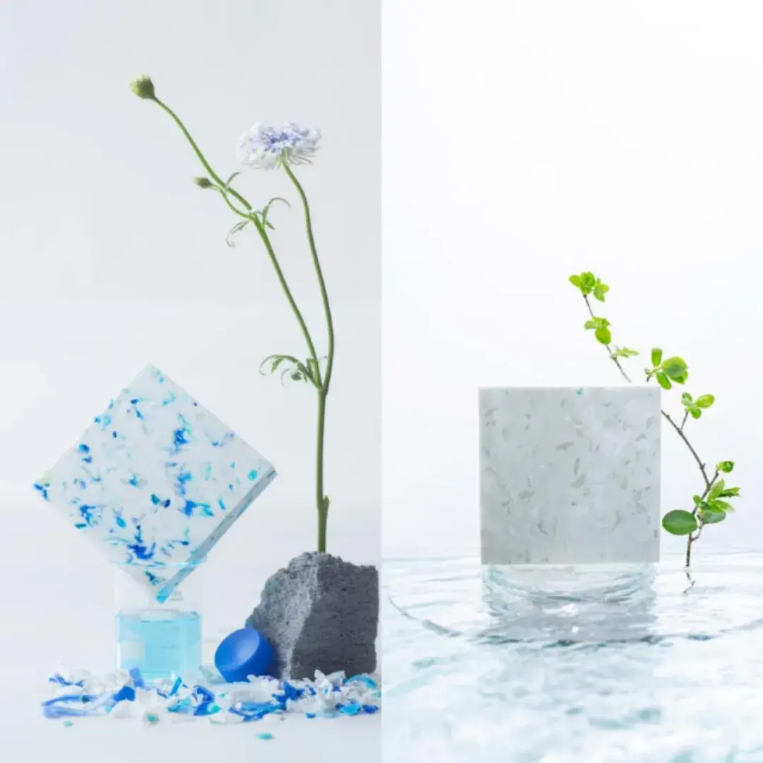 Suyu specializes in the circular design of PCR (Post-Consumer Recycled) plastics and innovative recycling technologies. Through self-developed automated high-end manufacturing equipment and pattern design, it transforms 100% waste plastic into large-area panels suitable for commercial real estate, retail stores, exhibitions, offices, furniture, and commercial gifts. This achieves high-value innovative applications of plastic recycling.